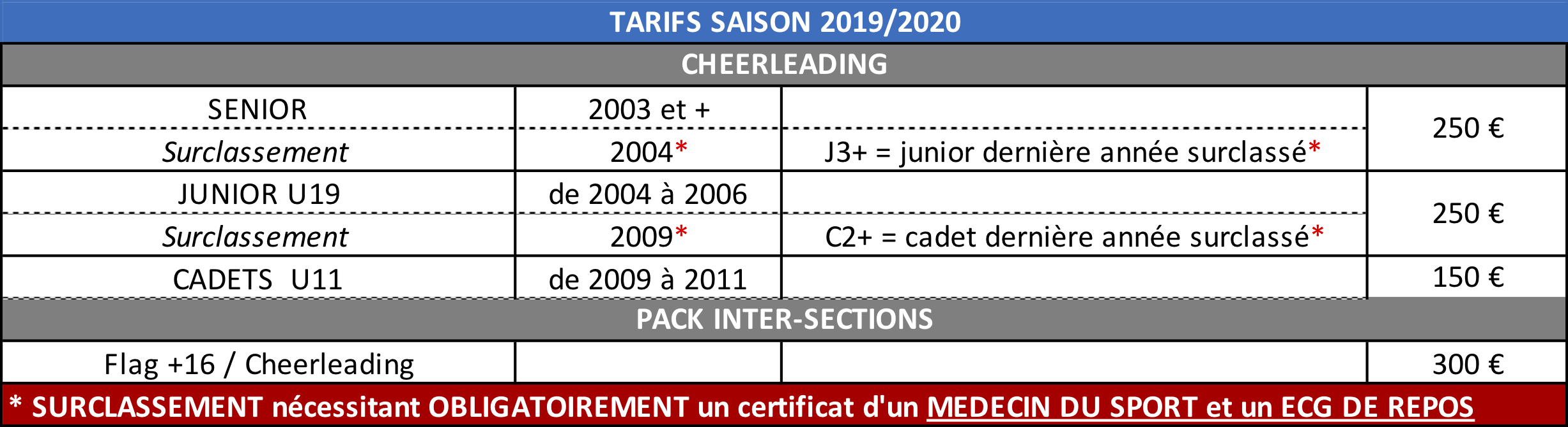Le cheerleading comporte plusieurs catégories : le cheerleading, le group stunt (enchainement de portés) et le cheerdancing (danse agrémentée éventuellement de pompoms).